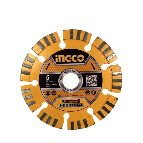 Диск алмазный сегментный 130х20мм INGCO DMD011301 INDUSTRIAL предназначен как для сухой, так и для мокрой резки кирпича, гранита, известняка, мрамора, плитки, бетона, натуральный и искусственный камень с помощью угловой шлифовальной машины.