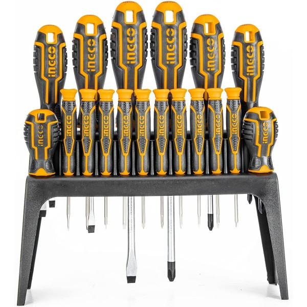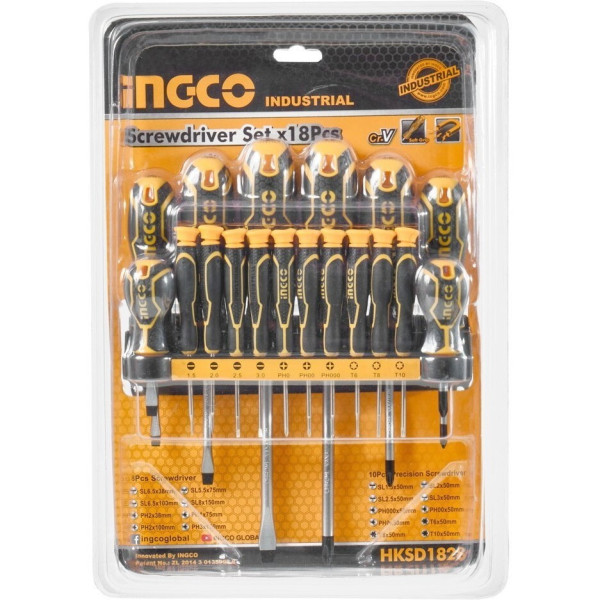 Универсальный набор отверток 18 шт INGCO HKSD1828 предназначен для работ с крепежом. Имеет в комплекте 8 отверток и 10 прецизионных отверток с разным шлицем для точных работ с крепежом на платах и деталях электроники.