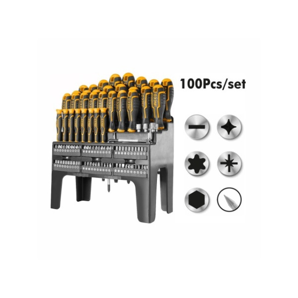 Набор отверток и бит 40+60 шт INGCO HKSD10028 INDUSTRIAL различного размера, позволяющих выполнять большой спектр работ с крепежом.