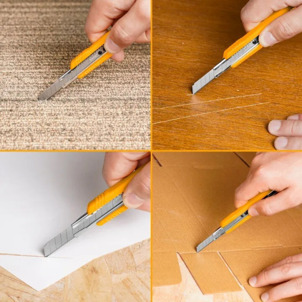 Нож канцелярский 9х135 мм INGCO HKNS110915 SUPER SELECT используется для разрезания бумаги, картона, напольных покрытий и других материалов.