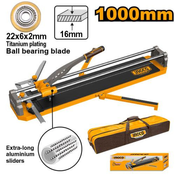 Плиткорез ручной 1000 мм INGCO HTC041001 INDUSTRIAL предназначен для ровного и точного реза керамической плитки длиной до 100 см и толщиной до 16 мм.