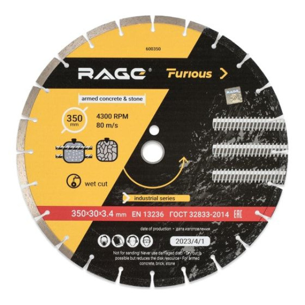 Диск алмазный сегментированный по железобетону и камню 350 мм RAGE Furiouc