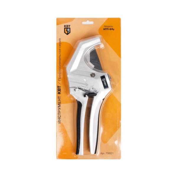 Ножницы-труборезы для пластиковых труб до 64 мм КВТ НТП-64у (79821) предназначены для резки пластиковых сантехнических труб при монтаже подводки. Материал лезвия: нержавеющая сталь. Твердость лезвия: HRC 54...56. Толщина обуха лезвия: 2.5 мм. Чистый рез без замятий за счет остро заточенного лезвия с V-образным профилем. Благодаря маленькому шагу реза и точному упору трубы, отрезание происходит ровно под 90°. Корпус инструмента изготовлен из легкого и прочного алюминиевого сплава. Храповой механизм облегчает процесс резки и позволяет работать с минимальным усилием. Открытие лезвия возможно в любой момент нажатием на подвижную рукоятку в обратном направлении. Блокиратор рукояток обеспечивает удобство хранения и транспортировки. Нескользящие прорезиненные вставки на рукоятках.